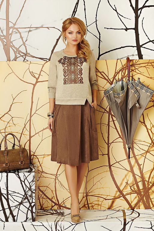 Наташа, а можешь описать на что ткани походит...М2390Т5001 джемпер жен , трикотажное полотно?М2390Y4001 юбка жен аналогичный вопрос, на что ткани походит, и цвет только коричневый?