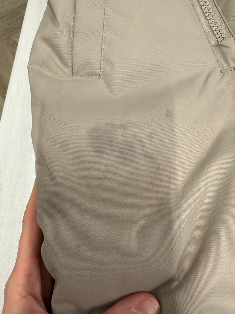 Р. S. Пятно ничем отмыть не смогли. В результате отнесли в химчистку, вернули куртку чистую. Но гарантий не давали.