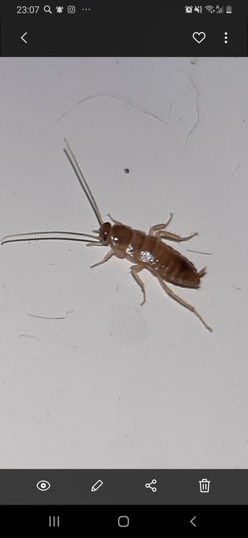Я в нэте тоже не нашла ничего, ни по описанию, ни по фото. Начала уже паниковать, но мама моя сказала, что такие насекомые заводятся иногда от влажности и вреда от них особого нет.