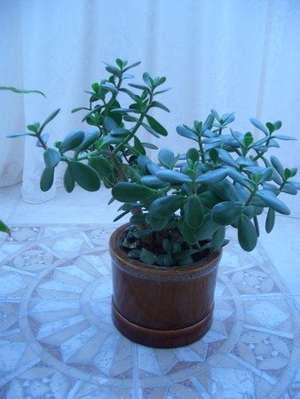 Она же крассула, жирянка и «денежное дерево». Говорят, что оно действительно приносит в дом деньги, но только в том случае, если его росток украсть. Крассула действительно похожа на дерево. У нее твердый ствол, на котором расположены веточки с толстыми, мясистыми черно-зелеными листьями. Чтобы вырастить такое дерево, нужно оторвать листик и поставить в стаканчик с водой. Постепенно листик пустит корешки, и вы увидите небольшие листочки у его основания. Значит, пора высаживать в землю. Хотя специалисты рекомендуют подсушивать листик 2-3 дня в торфе и песке и сразу сажать непосредственно в землю. Поливать «денежное дерево» надо редко, однако не допускать сильного пересушивания, а то жирные листики будут отваливаться. Смотрится дерево очень богато и благородно.