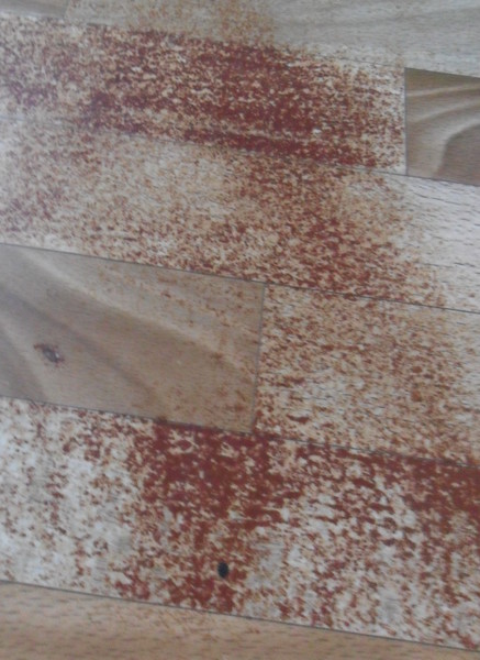 Я ни чем не тёрла, боюсь хуже сделать. Уверена, это не сойдёт уже...Сам линолеум деформирован, как при ржавчине прям(