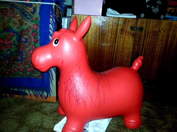 да нафига,ее скакун пусть будет)))само со временемотойдет....у меня др вопрос не по теме,вы егочемнадували????у нас олень)) и когда сан прыгает у него так копыта в пол сминаються.....и сын падает