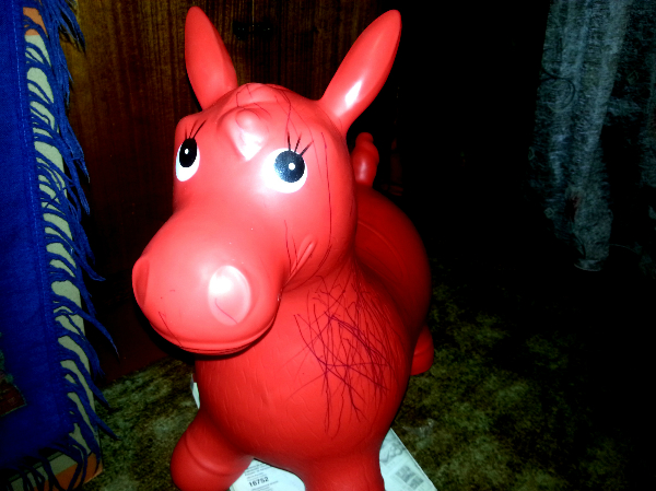 Лиз, а наш ослик - трансвестит))) предыдущие хозяева ему губы накрасили фломастером и не смывается)))) Я не парюсь)))Но если очень хочется смыть, то лучше пытаться сделать это как можно быстрее, а то прокрасится резина.