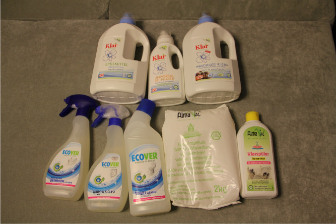 Дальше бытовая химия. Я взяла 2 фирмы - Klar и ECOVER, а также Alma для посудомойки.