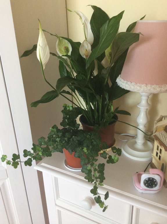 А еще этот с белыми цветами,в народе женское счастье не любит прямых солнечных лучей. В уголочке ему самое место.