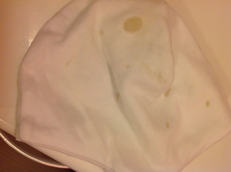 Мне тоже кажется что это после какой-то косметики. Может детский крем или масло попадает на одежду, а после стирки будут появляться пятна. У взрослых такое бывает после попадания на одежду духов.