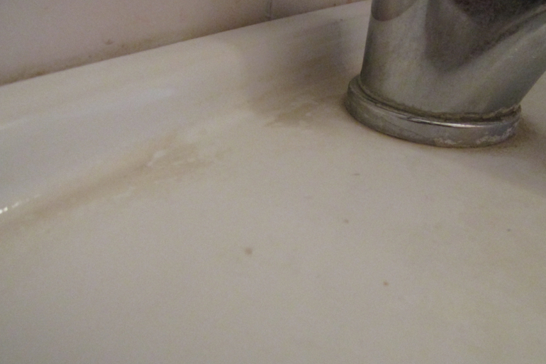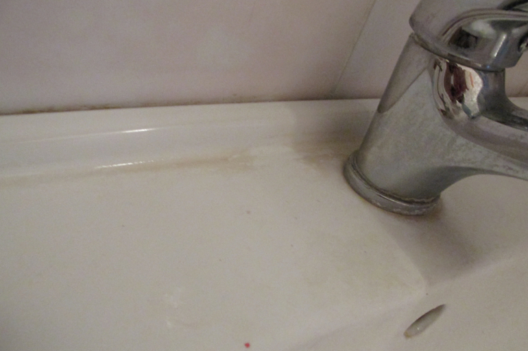 Снимаем квартиру, а в ванной на раковине камень образуется за краном, подлезть туда сложно, доместос не помогает. Использовать абразивные средства побаиваюсь, но вы скажите, что они помогут и я потру)))))