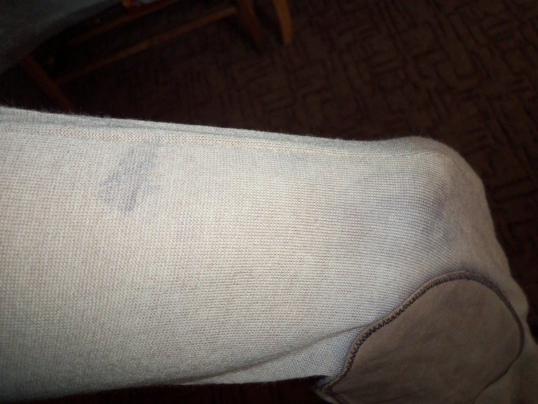 Выводим пятна, отстирываемВсем здравствуйте. У мужа полинял рукав на кардигане. Трикотаж.