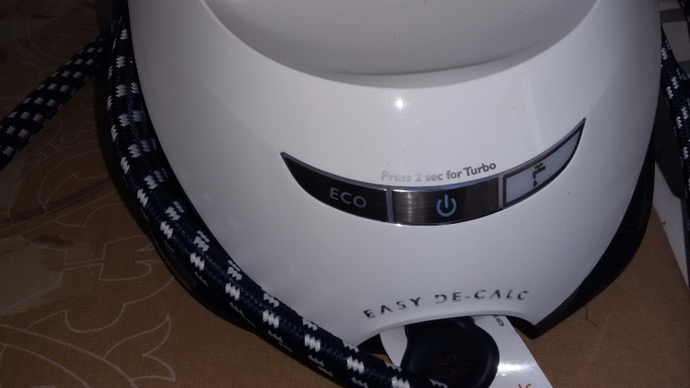 Второй момент который выделяет этот парогениратор от многих других- это Easy De Calc, или просто самоочищение от накипи. Большинство производителей парогинераторов в качестве защиты от накипи,советуют использовать дистилированную воду. Согласитесь заливать постоянно в резервуар такую воду- это совсем не из жизни, вообще так кто то делает? Мой парогениратор оснащен системой самоочищения! У него есть кнопка, которая начнет светиться, а сам этот умный прибор начнет издавать характерный звук- это сигнал, что настала пора почистить его от накипи. Нужно все лишь поднести стакан к клапану, открыть его и слить воду с частицами накипи в стакан. В инструкции указано, что это произойдет примерно через месяц. Опять таки, из своего опыта, работая с парогенираторами, очень часто бывало что парогениратор просто приходил в негодность именно из-за накипи, поэтому для меня эта функция-существенный плюс данному агригату.