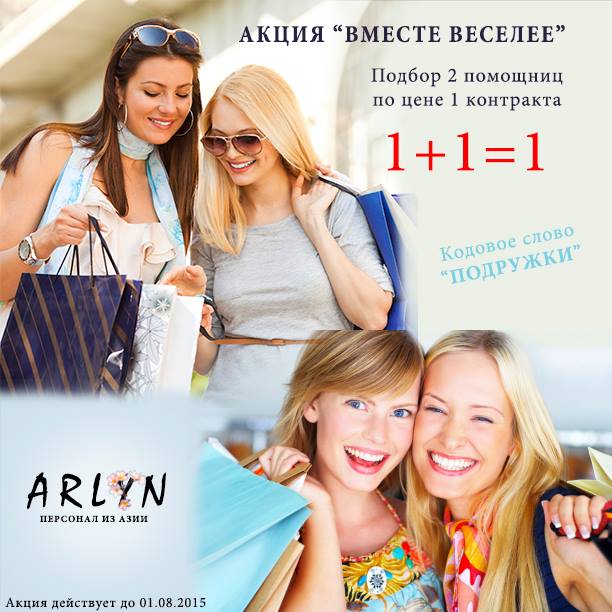 Уборка квартирыДо конца июля мы проводим акцию "Веселее вместе!" Подбор нянь и домработниц для двух подруг по стоимость одного контракта на год!! 1+1=1