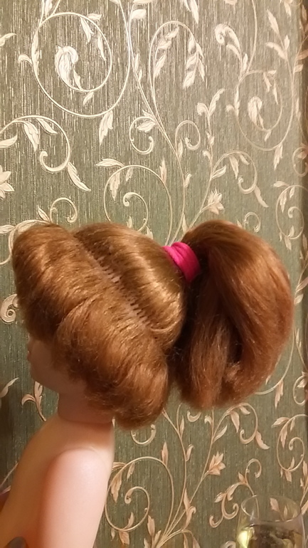 UPD. Куклу прочесала, помыла гелем для стирки. Нанесла ленор, прочесала с ленором, промыла, еще прочесала. Оставила сохнуть на ночь. Сегодня прошлась по всем волосам утюжком доя волос (на минимальной температуре), и окончательно уложила с помощью утюжка. И вот результат:
