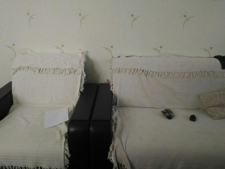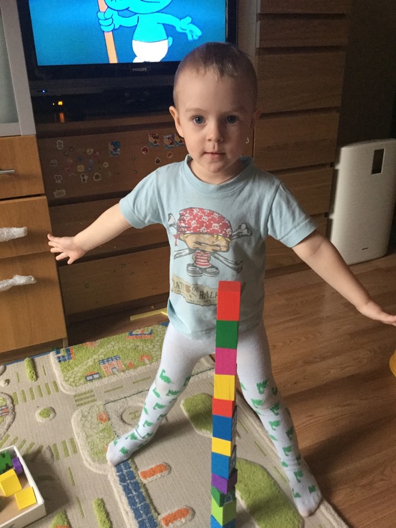 Вот сзади Мишки видно, что у нас гардероб и два комода. В гардеробе половина моих вещей, половина детских, в комодах вещи мальчиков и Наташи.