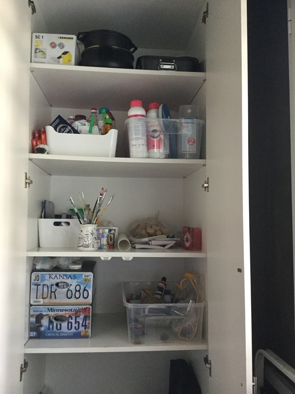 Теперь о моем начальном опыте -я начала с маленького : в шкафчиках на кухне. Все время думая, что сколько успею, столько успею . Т е я не нагнетала себя этими полностью вываленными вещами на пол одновременно со всех шкафов )))