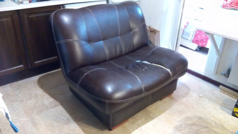 Мне сил не хватит стянуть шов, но видимо надо попытаться, дырки не порваны, а-то что-то не могу никого найти, кто сделать может. Вот нашла уже жидкую кожу, попробую промазать. Но для меня вообще странно, что краска так на коже потрескалась. Это Новгородская область делает такие диваны, не понятно, что за покрытие такое. Я на фабрику писала, они меня проигнорировали. :(