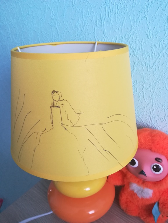 А мне нравится.Я б разрешила дорисовать и раскрасить.Детская же)))Художества будут в любом случае,а так лампа уже "защищена")))