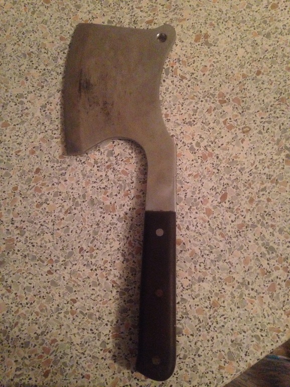 Материал рукоядки- нат. костьА вот то, чем я пользуюсь на кухне:сталь самая лучная у ножа марки " APOLLO", крайний справа. А самый эргономичный для меня " TRAMONTINA", крайний слева. Это, кстати, недорогие марки. И , в заключение, топрик для рубки мяса, сделанный руками моего папы.