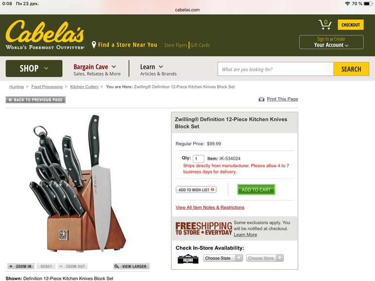 Давным давно купили копеечный набор не кованых Zwilling на сайте Cabelas, отличные ножи за 50 баксов. Лет 10 им уже точно. Живы и здоровы. Все ножи - пилки. Типа такого, но похуже, ножей побольше и ценник был до 50 баксов