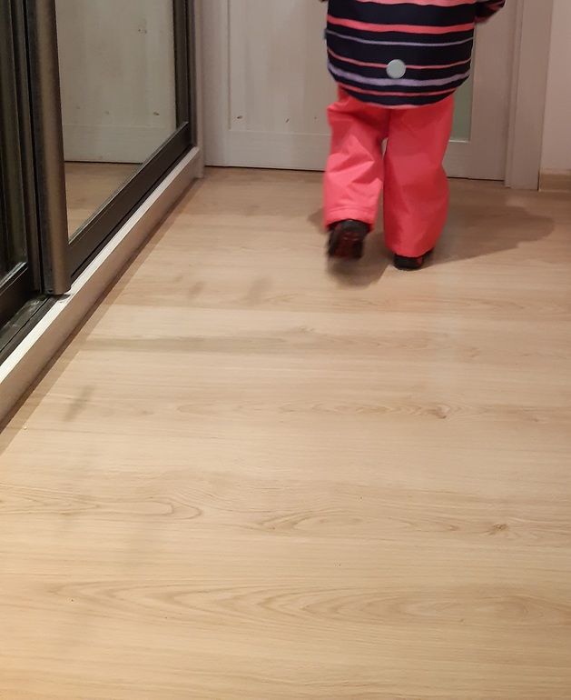 У нас вот такой ламинат 👇 во всей квартире. На нем видно только откровенную грязищу - грязь с обуви, крошки шоколадного печенья, и все такое. Шкаф светлый (слева в кадре), с него можно вообще пыль не выбирать, её не видно. Но я вытираю, конечно.. Прям интересно, что за светлый цвет у вас.