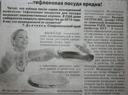 слышала что все тефлоновое очень вредно. И вот снегодня наткнулась в АиФе: