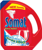 видимо, на качество средства влияет вода, которая у вас из крана течет. У нас посудомойка, мы пользуемся Калгонитом, в воде много железа, хлора меньше, чем в Московской воде, и сомат не промывается совсем. Мы им перестали пользоваться почти сразу.