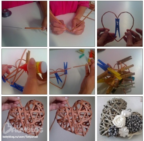 Используя клей и прищепки, сделайте сердце, как показано на фото.