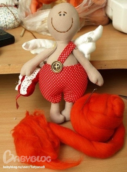 2. Выкраиваем нашего Валентинчика и прострачиваем на машинке. Отверстие для набивки тела оставляем сбоку, его как раз не будет видно под штанишками.