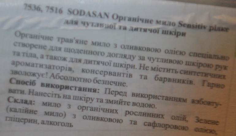1. Мыло для детской и чувствительной кожи (в составе смущает "мило з органічних рослинних олій"/мыло из органических растительных масел - где-то читала, что это ПАВ):