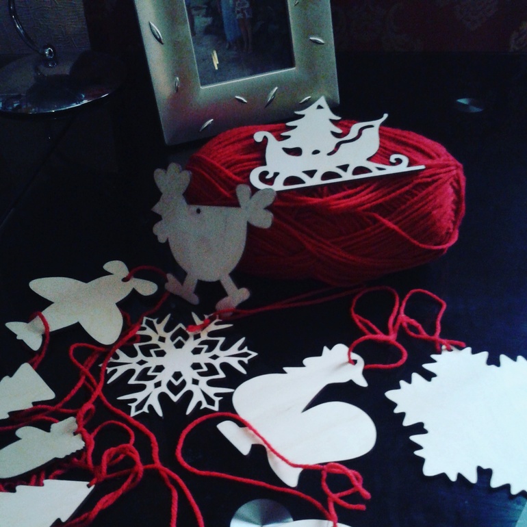 Пока дочка маленькая, я решила что стеклянные игрушки рановато вешать. И нашла вот такой вариант. Обожаю Handmade. Впереди целый год для декорирования таких игрушек: нитки, акрил, клей и блестки ))) Алена пищала даже от таких, обычных деревянных