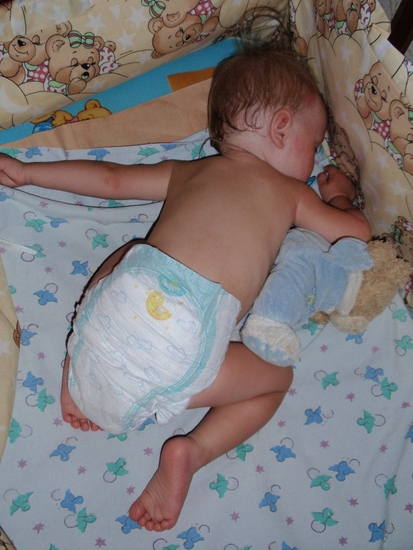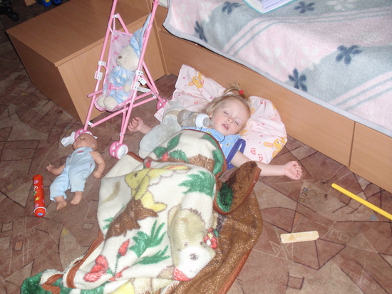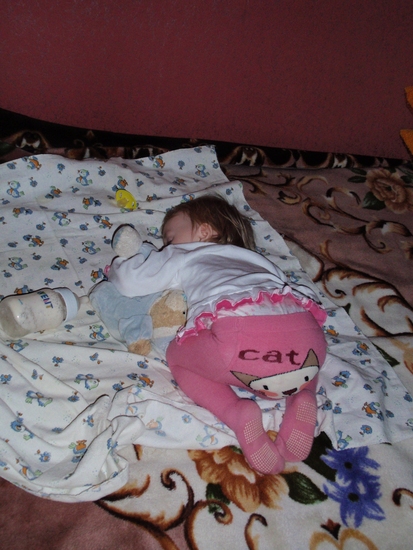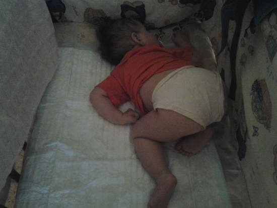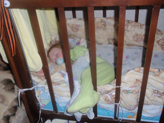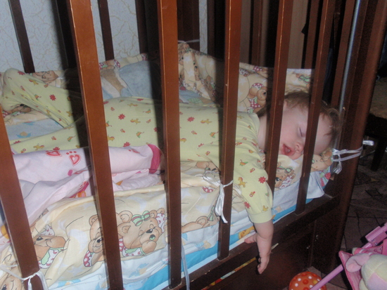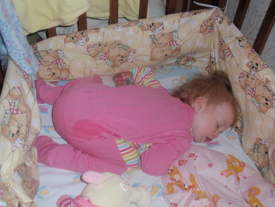 о, да! ещё не удалось сфоткать, как она спала, закинув ноги на шкаф - кроватка возле него стоит