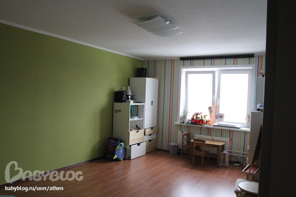 у нас тоже, к сожалению, 1-комнатная квартира, вот и думаешь как разместить всё, чтобы и ребенок своим местом был не обделен.
