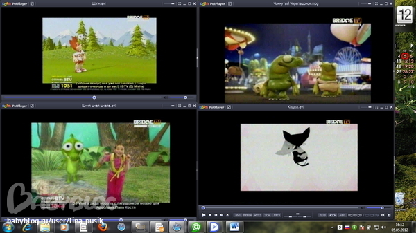 Телевизор и гаджетыСмотрим мультфильмы (детские клипы) не один , а два или по 4 сразу). Незнаю, нормально ли это??? Но смотреть любит именно так.
