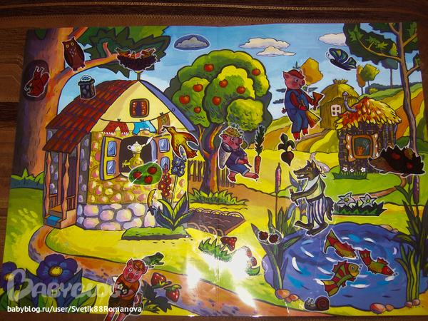 Сын (2,5 года) с интересом клеет и "двигает" фигурки. Мы разыгрываем увлекательные сценки, не всегда чётко по сказке, но тем интереснее!