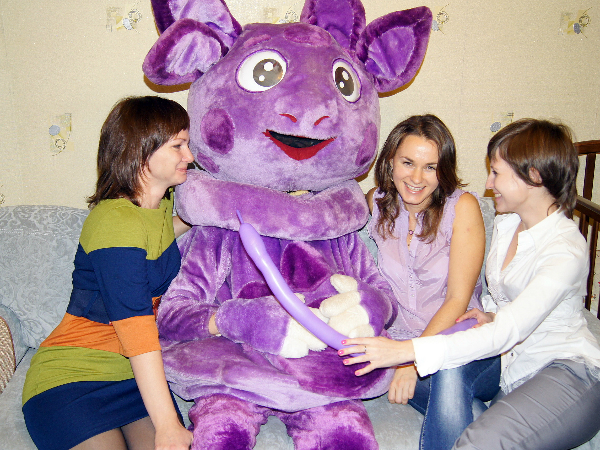 Когда он облачился таки в костюм заказанного собственно смешарика у нас ещё оставалась слабая надежда, что вот сейчас-то все и начнется! Расселись поудобнее ииии... Зашел. Стоит. Молчит...