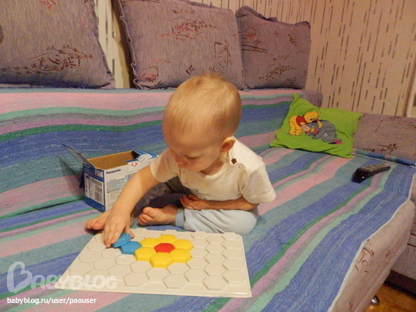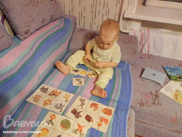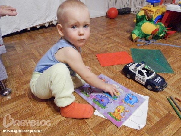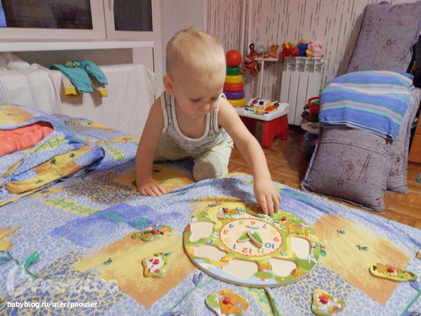 У нас 12 зубов, лезет 13-14-ый. Говорить лучше не стали. Что мы умеем:едим, пьем сами, ходим на горшок(ночью спим в памперсе), собираем пирамиды, пазлы деревянные, любит лепить с теста, рисовать (вся мебель, обои в художестве), любит играть в карточки, многие картинки уже хорошо складывет, играем с мозаикой, вообщем как все детишки, развиваемся. Фото (извините за бардак)
