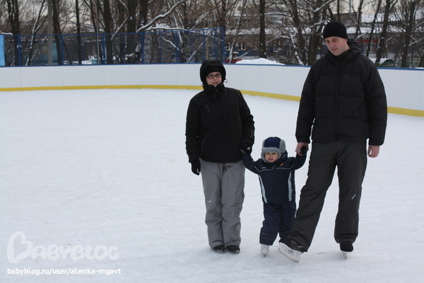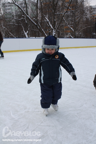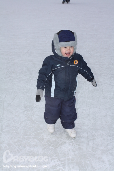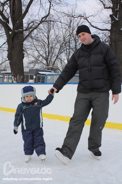 Идем на прогулкуА мы сегодня катались на коньках.Впервые!!Вообще ппошли посмотреть как катается папа и друзья, но сын затребовал и себе коньки))))Сначала ноги разъезжались ппостоянно, а минут через 5 он уже , не скажу слово катался, но "xодил" или "бегал " в ниx очень уверенно))) для первого раза прошло все на ура! Теперь требует клюшку, говорит будет учить xоккей