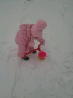 Идем на прогулкуХорошо теперь , темнеет всё позже и позже ... ) Можно гулять после дневного сна !!! Что мне нравится более , чем до ... Вооружившись ведёрком и лопатой - пошли лепить снежные бабки и расчищать снег ))) ...