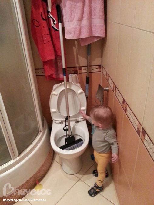 Так мы тоже помогаем, аж вырывает ее у меня из рук, но впервые в унитазе полоскать пытался))) Мы хохотали до слез, а он стоял возле этого всего и апплодировал сам себе)))