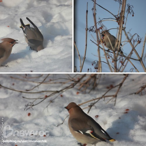 три зимы назад к нам впервые прилетели голодные лесные птицы... как раз тогда очень здорово начали вырубать ближайшую лесополосу под новое строительство, вот свиристели в город и потянулись. Сейчас мы им уже не удивляемся, у нас около дома несколько яблонь-дичек, и птицы хорошо знают, где можно подкрепиться)))