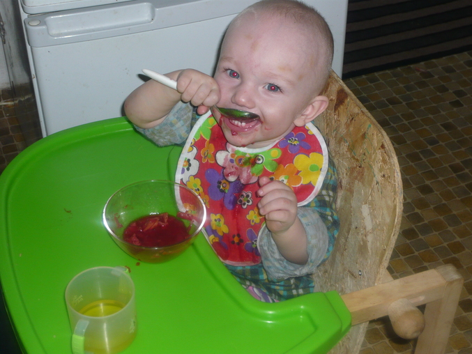 Растем и развиваемсяна обед был борщ. сына отобрал ложку и начал активно ей работать