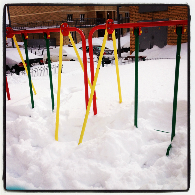 вот горка наполовину засыпана снегом...далее качели...вообще жесть я бы сказала.