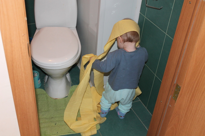 Растем и развиваемсяВот последствия того, что мама не плотно закрыла дверь в туалет. За туалетной бумагой охотились давно... Мечта сбылась! Добрался!)))
