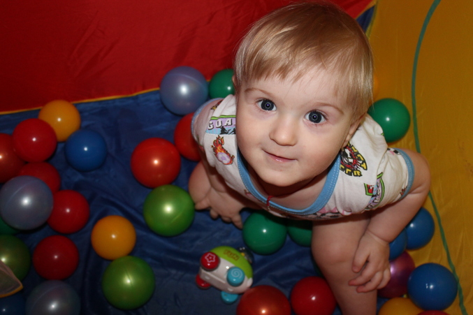 Играем в домике с сухим бассейном. Ежевечерний ретуал:мама собирает разбросаные по всему дому шарики.