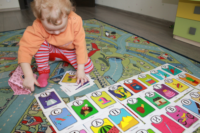и еще у нас есть вот такие красивые карточки,покупала сыну,когда начинали учить алфавит,но его они не заинтересовали,зато Варюшка в восторге)