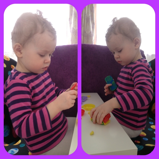 1) В последнее время ооочень любим лепить,а именно катать колбаски из пластилина,прилеплять маленькие кусочки друг на друга.И главное со словами:"я сам"))ну сама никак говорить не хочет)))