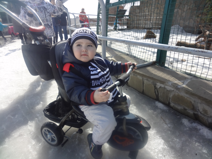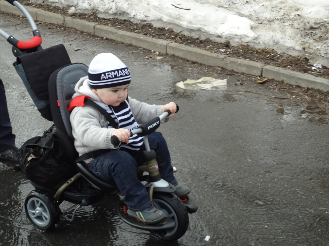 Когда папа собирал велик,сказал-хороший траспорт,как раз на наш возраст,летом будет ездить сам.Я рожу скорчила тогда,а сейчас понимаю,что там реально малышу самому доставать до педалей и крутить их.Но я пока не готова к такой самостоятельности))))))