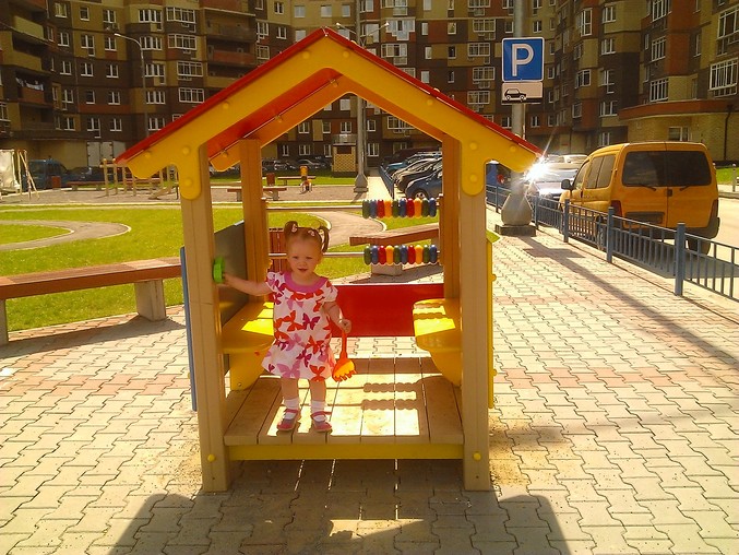 Координация улучшилась очень заметно. Забирается везде, по всем лесенкам, на все качели. Подтягивается на ручках. Появился контакт с другими детьми, осознаный. Может подойти, дать игрушку, или поднять упавшего (попыться поднять, конечно). Это так мило.