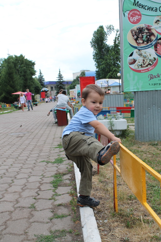 Идем на прогулкуПока наш папа был дома, накатались по паркам вдоволь)) Кирюха катался на всяких там каруселях паровозиках, паровозы и поезда нравятся больше всего, аттракционы типа летающие слоники и т.д. заценил не очень, пока видимо не понятно, еще нравятся машины! Ооо!! Это наше все, машины любые, даже которые просто стоят на месте, залезет, все покрутит, на все кнопочки нажмет)))