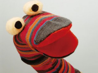 Приклейте глаза к носку с помощью двустороннего скотча или просто пришейте.