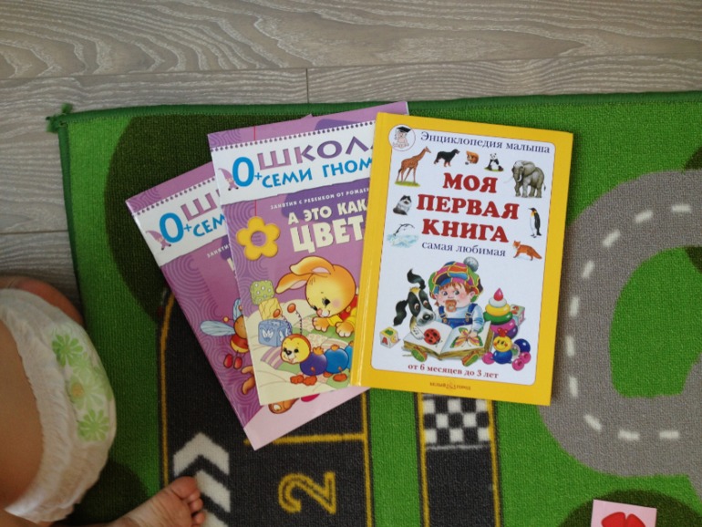 1. "Школа семи гномов", хорошо что я купила только две. Ерунда полнейшая. Одна для изучения цветов, представлены всего 5 цветов, они очень тусклые, грязные какие-то, будто кисточку помыли в грязной воде и развели ею краски. Вторая про формы. Три кружочка, три овала, три квадрата и треугольника. В центре книжки вкладка из более плотной бумаги, для вырезания форм. Потом нужно эти формы правильно прикладывать к нарисованным. Ну короче она точно не на 0+ как написано. Нам вообще не интересна до сих пор, как я не пыталась Леву с ними знакомить. Попробуем конечно позже. Но я считаю покупателей дурят, указывая возраст 0+.