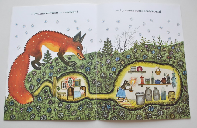 Ребенку моему книжка тоже моментально понравилась! Реплики мышки мой ребенок очень быстро выучил, и где-то в 1,5 года мы "читали" эту сказку по ролям. Я, конечно же, была лисичкой. А сколько времени мы провели в спаленке и кладовочке мышки, рассматривая и обсуждая каждую детальку на картинке... мммм...